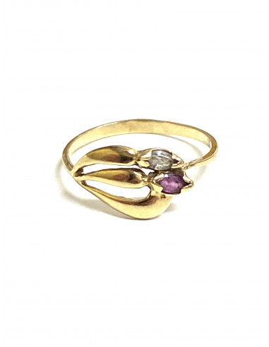 Anillo oro amarillo de 18 kilates con circonita roja y blanca.
