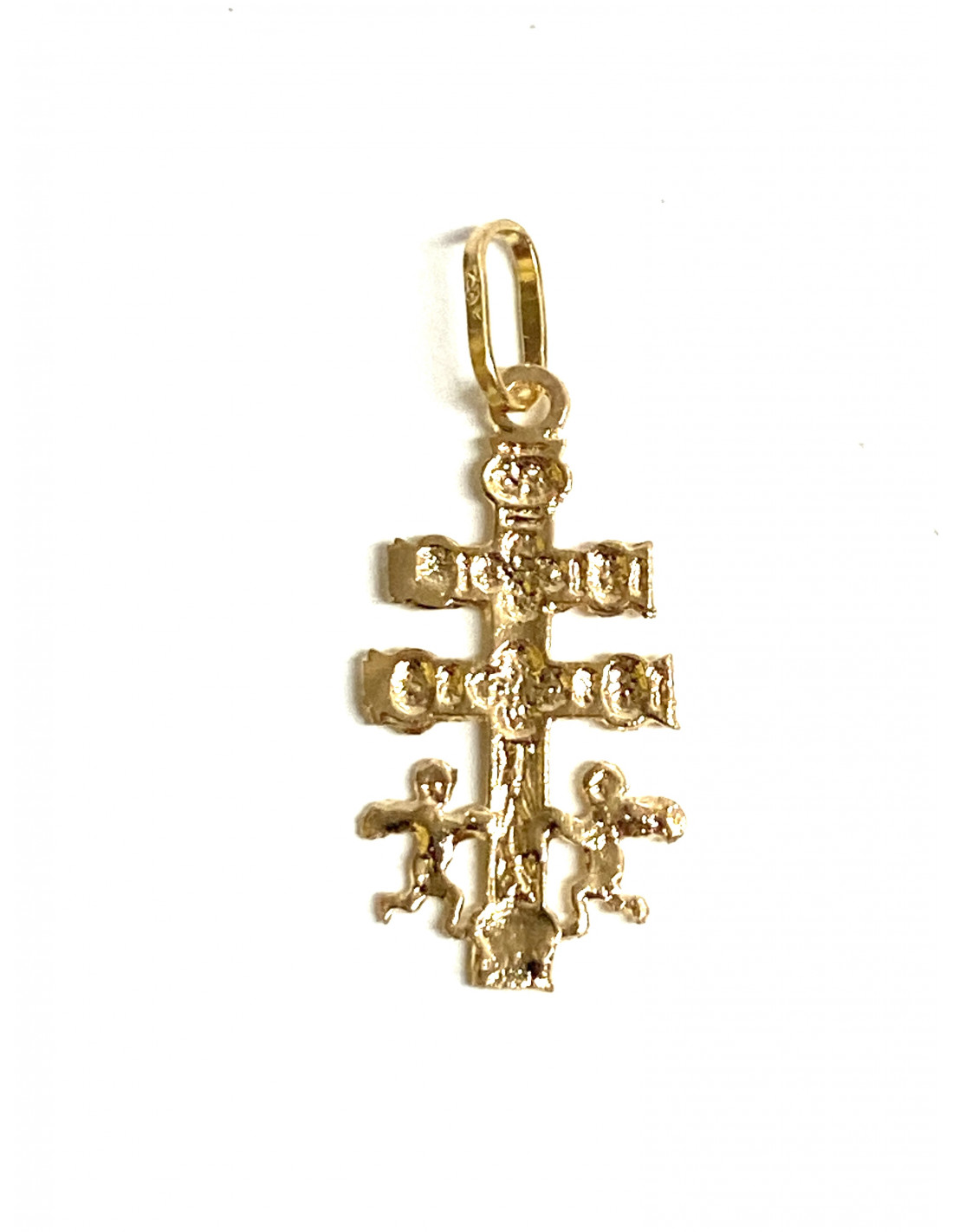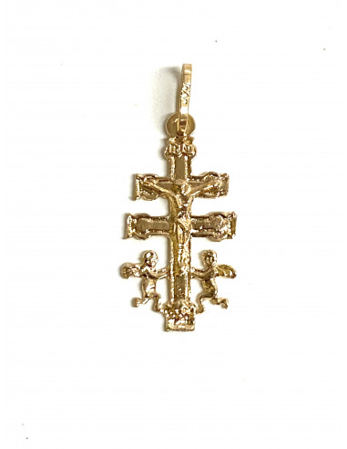 Cruz Caravaca en oro de 18 kilates. Peso aprox.0,60  Medida:22x9 mm