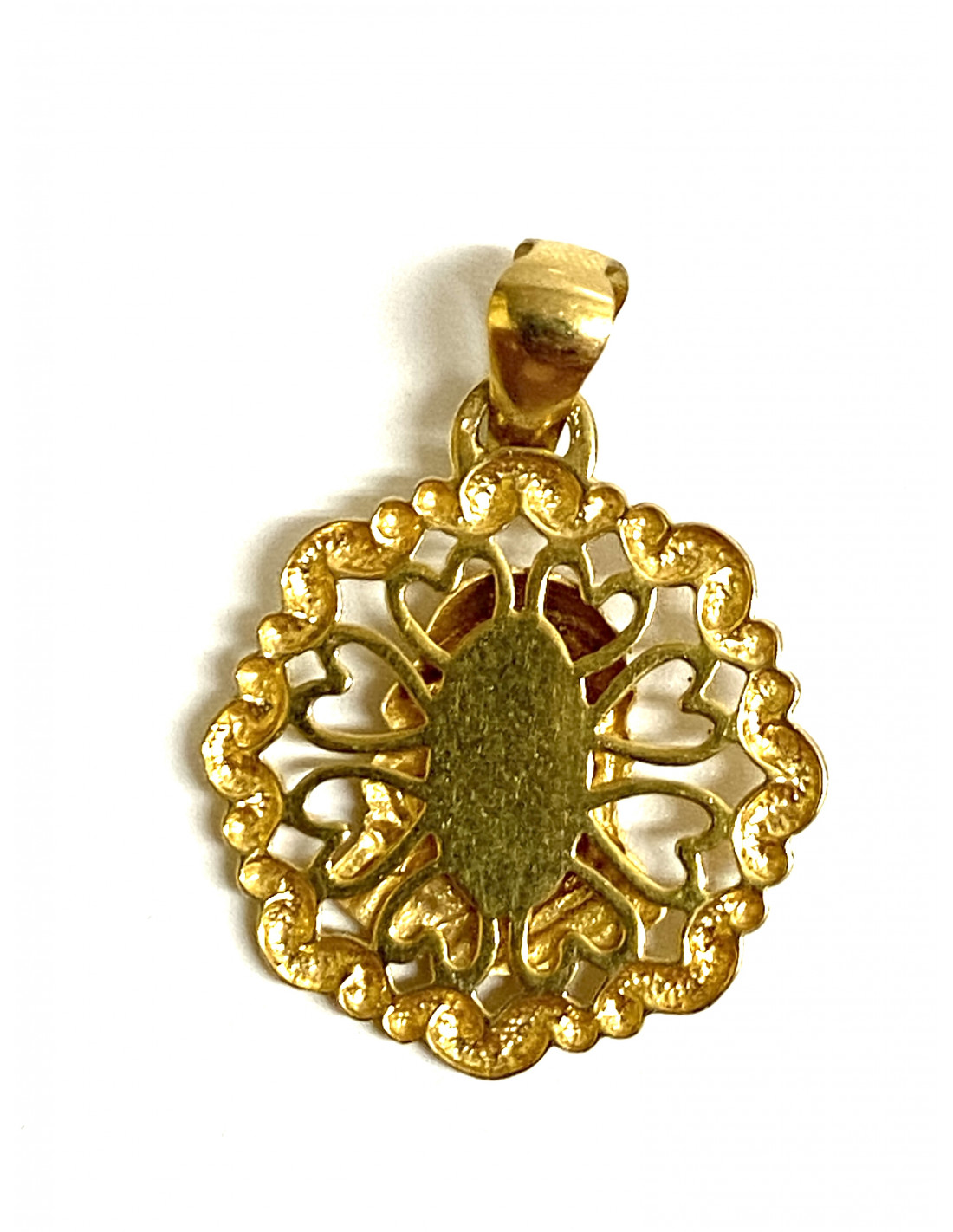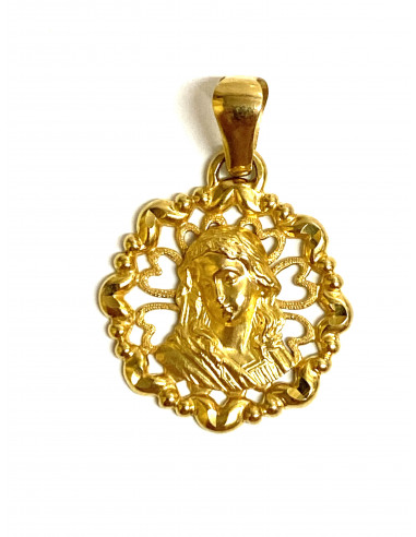 Virgen Niña en oro de 18 kilates. Peso aprox.3,90 g Medida: 31,6x22,8