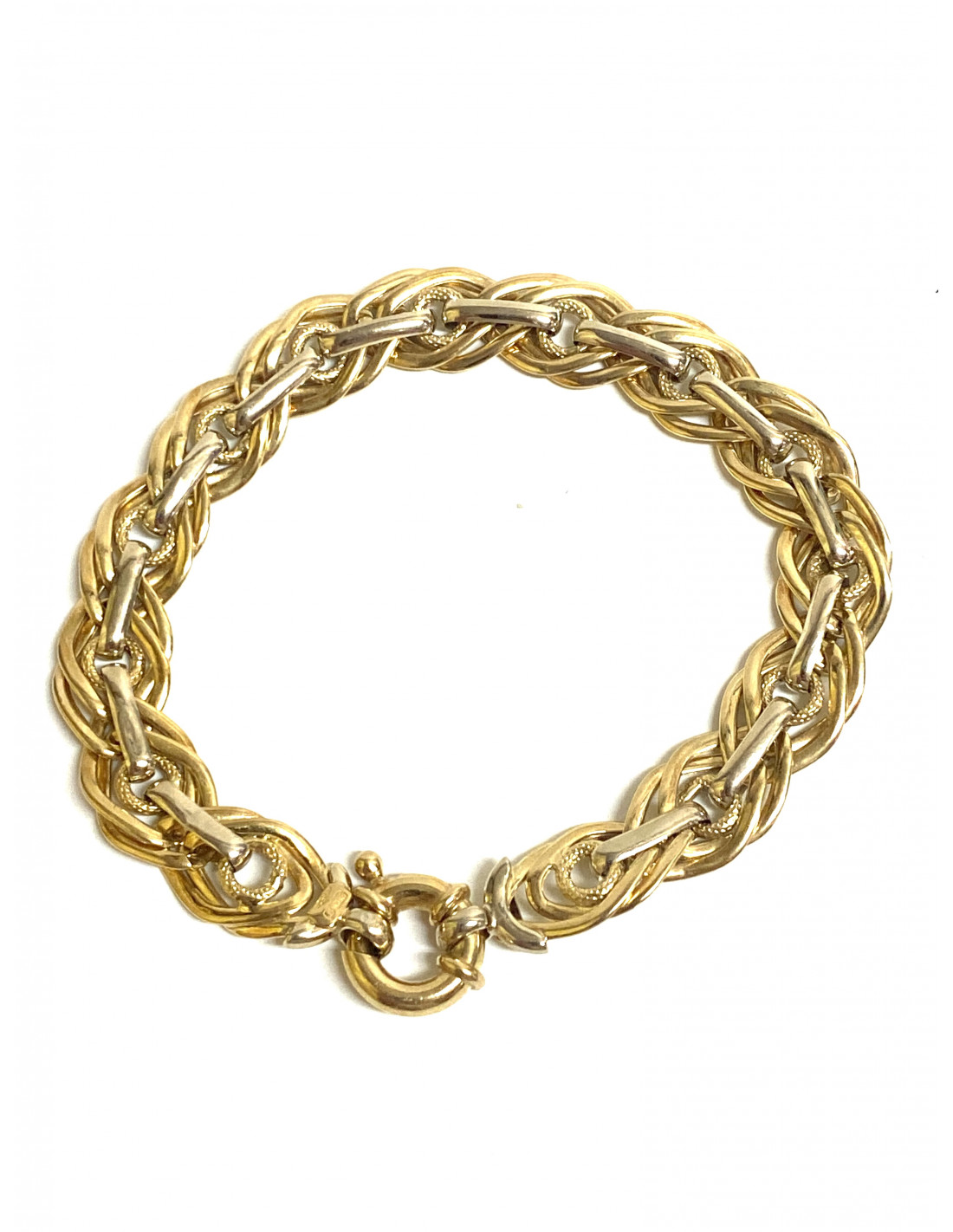 Pulsera Bicolor en oro de 18 Kilates. Peso aprox: 12 gr.. Longitud: 19 centimetros centímetros. Grosor:10mm. Cierre: marinero